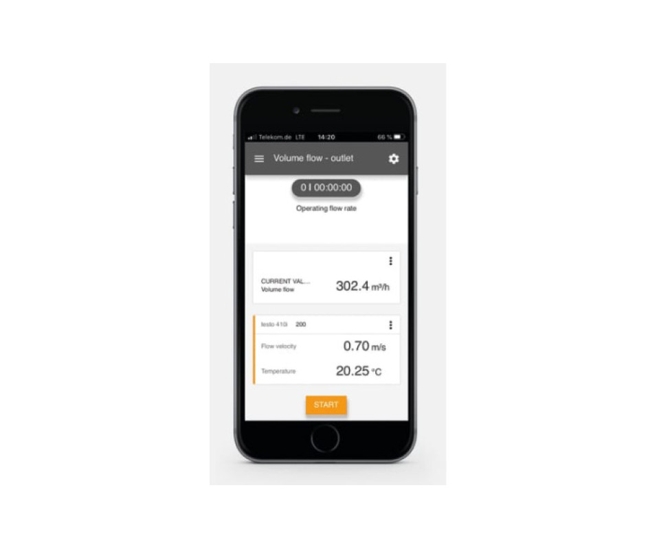 Смарт-зонд testo 410i совмещает в себе профессиональную измерительную технологию Testo и эффективную функциональность мобильного приложения. Ваш смартфон или планшет служит в качестве удобного дисплея для отображения измеренных значений непосредственно на месте замера. Просмотр данных измерений возможен благодаря мобильному приложению testo Smart, с помощью которого Вы также можете отправлять протоколы измерений напрямую по e-mail в формате PDF или Excel.Настройка измерения объемного расхода воздуха происходит максимально просто благодаря возможности задания параметров вентиляционной решетки (размеров и геометрии). Полезная практичная функция: при регулировке системы вентиляции Вы можете параллельно определять и сравнивать значения объемного расхода на нескольких вентиляционных решетках. Усредненный по времени или для нескольких точек замера расчет также позволяет быстро определить среднюю скорость воздуха на вентиляционной решетке.