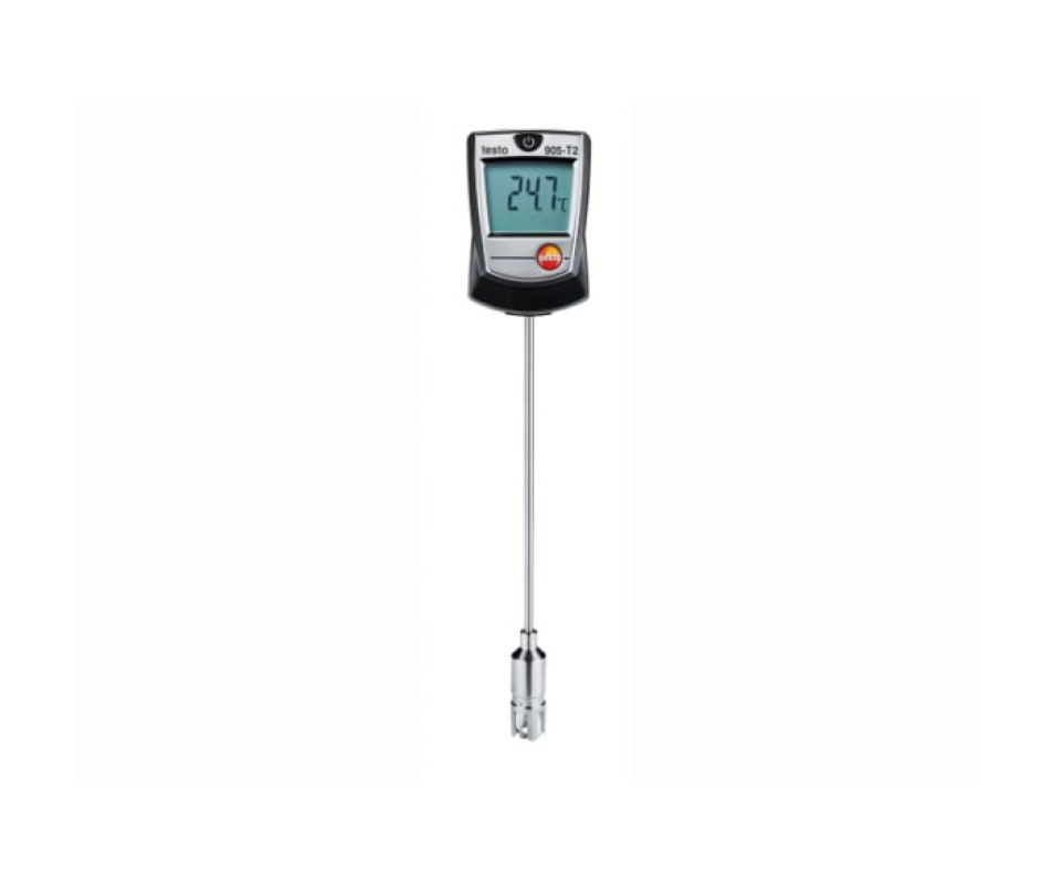 Термометр testo 905-T2 - наша новейшая разработка. Профессиональный поверхностный термометр - по доступной цене. Подпружиненный широкий наконечник с термопарой обеспечивает высокое быстродействие, низкую погрешность измерений благодаря хорошему соприкосновению с неровной поверхностью измеряемого объекта.С подтвержденными метрологическими характеристиками и расширенными техническими данными можно ознакомиться в описании типа в Центре загрузки.